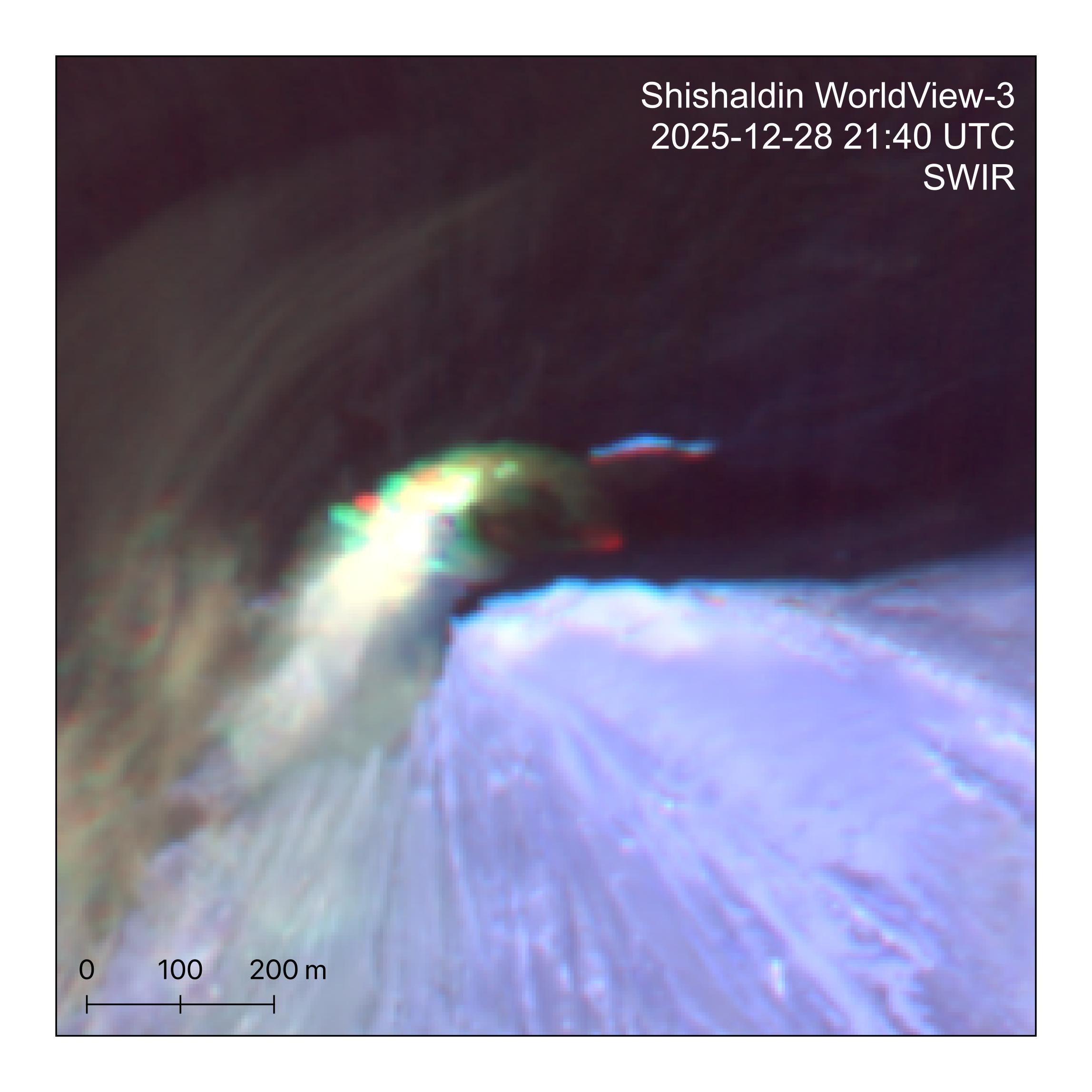 WorldView-3 SWIR image of shishaldin summit showing _extremely_ weakly elevated surface temperatures