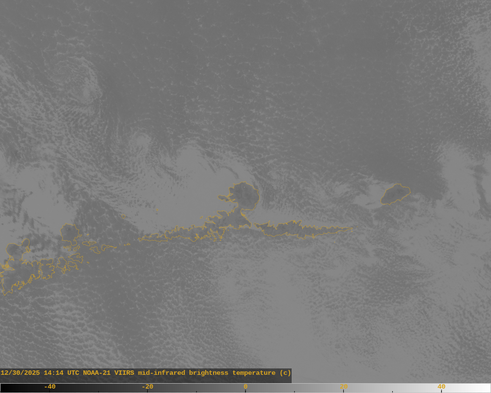 Shishaldin (YELLOW/ADVISORY): Weak steaming observed in webcam views and clear satellite views. WorldView-3 imagery may show slightly elevated surface temperatures in SWIR bands, however, it is extremely faint.