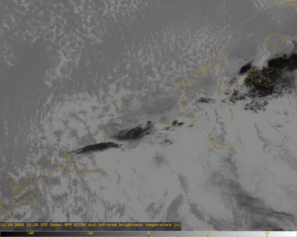 Great Sitkin (ORANGE/WATCH): The active dome shows up as a persistent weak thermal anomaly in VIIRS mid-IR images over the past 24 hours. The few daylight webcam views were cloudy.