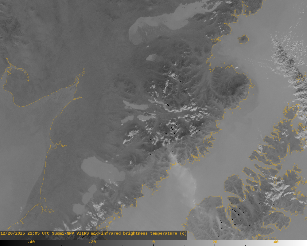 Shishaldin (YELLOW/ADVISORY): The barest hint of elevated temps (maybe) was visible in VIIRS mid-IR images. Maybe the plume is just slightly warmer than background? Speaking of the plume, webcam views show it's still there and unchanged.